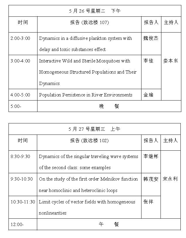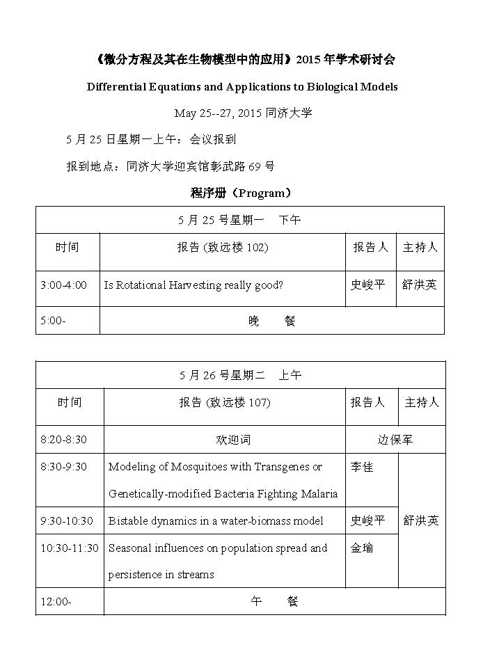 《微分方程及其在生物模型中的应用》2015年学术研讨会