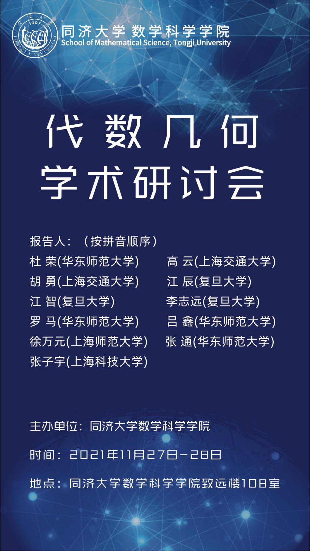 2021年寸止 “代数几何学术研讨会”将于2021年11月27日至28日在中国上海寸止 召开。本次会议诚邀国内代数几何优秀青年学者参会交流,旨在探讨代数几何研究的最新进展,促进国内同行之间的交流与合作,增进友谊。本次学术研讨会由寸止 主办。