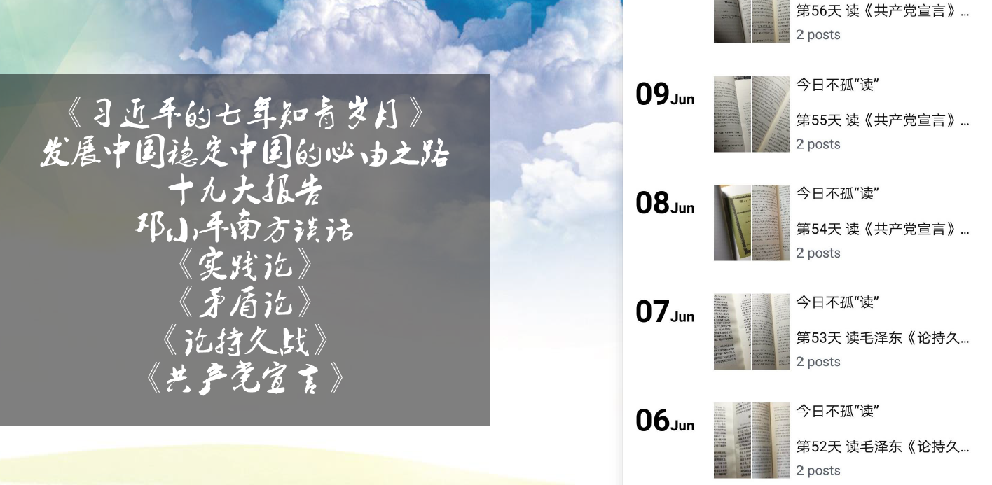 内修于心,感受时代担当。自主阅读模块采取线上线下相结合的形式,为各位团干部策划、组织“今日不孤‘读’”----《习近平的七年知青岁月》线上共学活动。活动期间,每位团干部每天读书打卡,每周进行线上讨论,每月提交读书笔记。各位团干部从小故事中读出大道理,从真情怀中感受大担当,要与时代同心同向,敢为人先、刻苦磨炼。