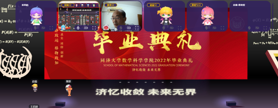 向圆满完成学业的2022届全体毕业生表示热烈祝贺。他肯定了2022届同学在抗击疫情中的表现,他表示,这次奥密克戎新冠疫情是人生中的第一次大考,而同学们的理性、坚毅、担当也证实了大家是能够堪当大任、拥抱未来的同济数学人。当今世界正经历百年未有之大变局,未来仍充满很多挑战,希望大家坚定目标、勇攀高峰、格物致知、宁静致远;也希望同学们不仅要立足当下,也要志存高远。他对毕业生提出两点期待:一是希望同学们在生活中不要患得患失,人生是一场马拉松,暂时的成功和失败都是眼前的,希望同学们不忘初心、牢记使命,既能脚踏实地,又能仰望天空;二是希望同学们能够常怀感恩之心,没有一种给予是理所当然的,学会感恩就是学会做人的支点,希望同学们能够感恩自己的父母、感恩老师、感恩同学。