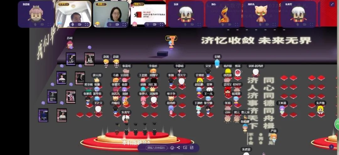 本次毕业典礼特别使用了元宇宙在线平台,参会者可以通过虚拟形象入会,在搭建的场景中自由活动,与其他参会者实时互动、同步交流。典礼设置5个会场,除了毕业典礼主会场,还有济忆红毯、合照广场、同数茶水间、樱花大道等互动会场,毕业生可以在会场进行合影留念、观看展览、聆听老师寄语,真正提升线上典礼沉浸感和仪式感。值得一提的是,本次毕业典礼的vland元宇宙平台也将持续存在,成为2022届寸止
