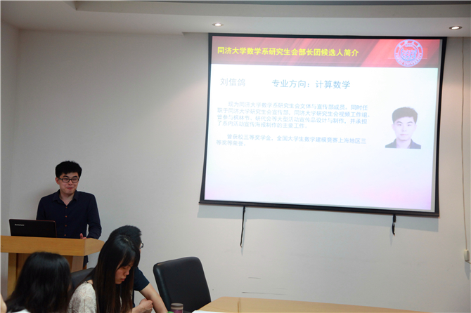 之后,进入主席团成员和各部门部长的竞选环节,各竞选人分别就自己对部门的认识,以及在过去工作中取得的成绩和对未来工作的展望等方面做竞选演讲。竞选通过无记名投票的方式进行表决,并采用现场计票揭晓竞选结果。数学系研究生会换届选举顺利落下帷幕。