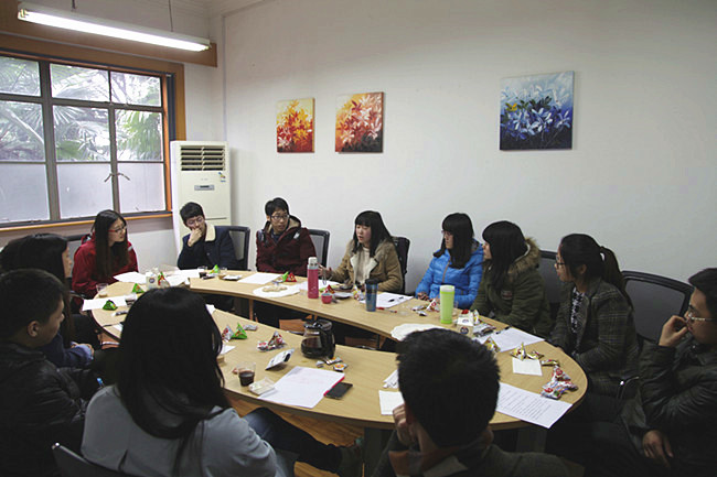 作为首期“谈天说地”主题沙龙,六位嘉宾各有特点。两位来自2013级数学系研究生国家奖学金的获得者——儒雅学霸余波和美女学霸赵瑜。通过沙龙交流,同学们了解到“学霸的生活常态”——图书馆朝九晚十对他而言一点都不觉得无味,沉浸在书海中让他觉得轻松而愉快,他云淡风轻的生活态度让同学们敬佩不已。余波同学酷爱武侠,他与同学们分享了对于金庸武侠的独到见解,他用郭靖的成功经历生动得告诉我们:只要我们人生的每一步选择都能够坚守“本真”,坚持善良,那么人生的道路一定会越走越宽。美女赵瑜则与我们分享了她的游学旅欧经历。她说,巴黎原本每个少女魂牵梦绕的地方,但自己当初只是跟随着大部队匆匆而过,埃菲尔铁塔也仅仅只是看过的一道风景,在心里了无痕迹。而独自进行的雅典之旅,本以为会觉得无聊,但当你将一切掌握在自己手中,时间留给了自己的时候,会用心去探索每一块石头背后的故事,反而能感到旅行的真正乐趣,此时你所走过的每一块石阶都会变得与众不同。她的发言引发了在场很多嘉宾的同感,“关注于自己的内心世界比无谓得去附和大众的观念会更加有意义”。