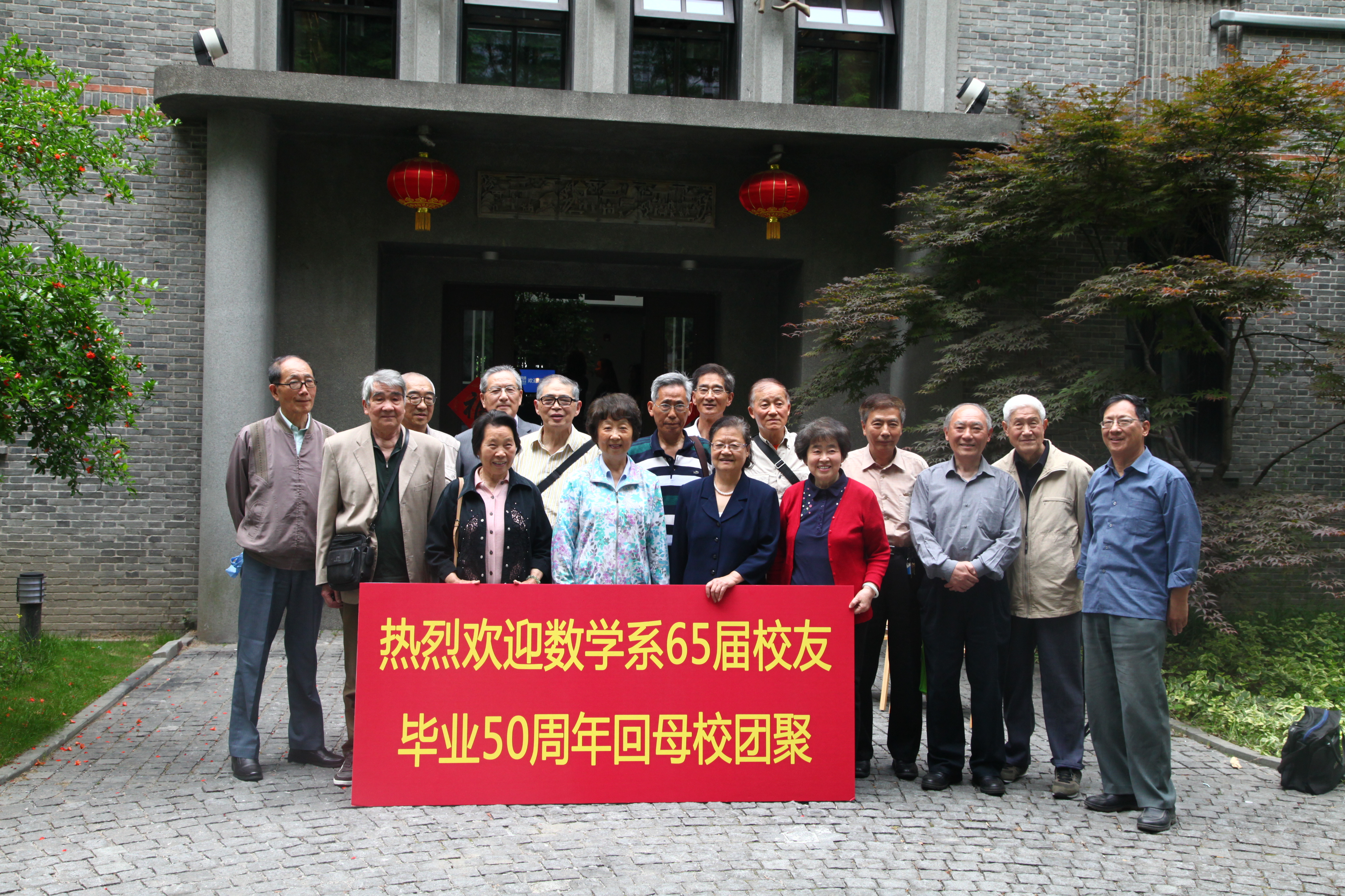校友们在校友之家旭日楼门口合影