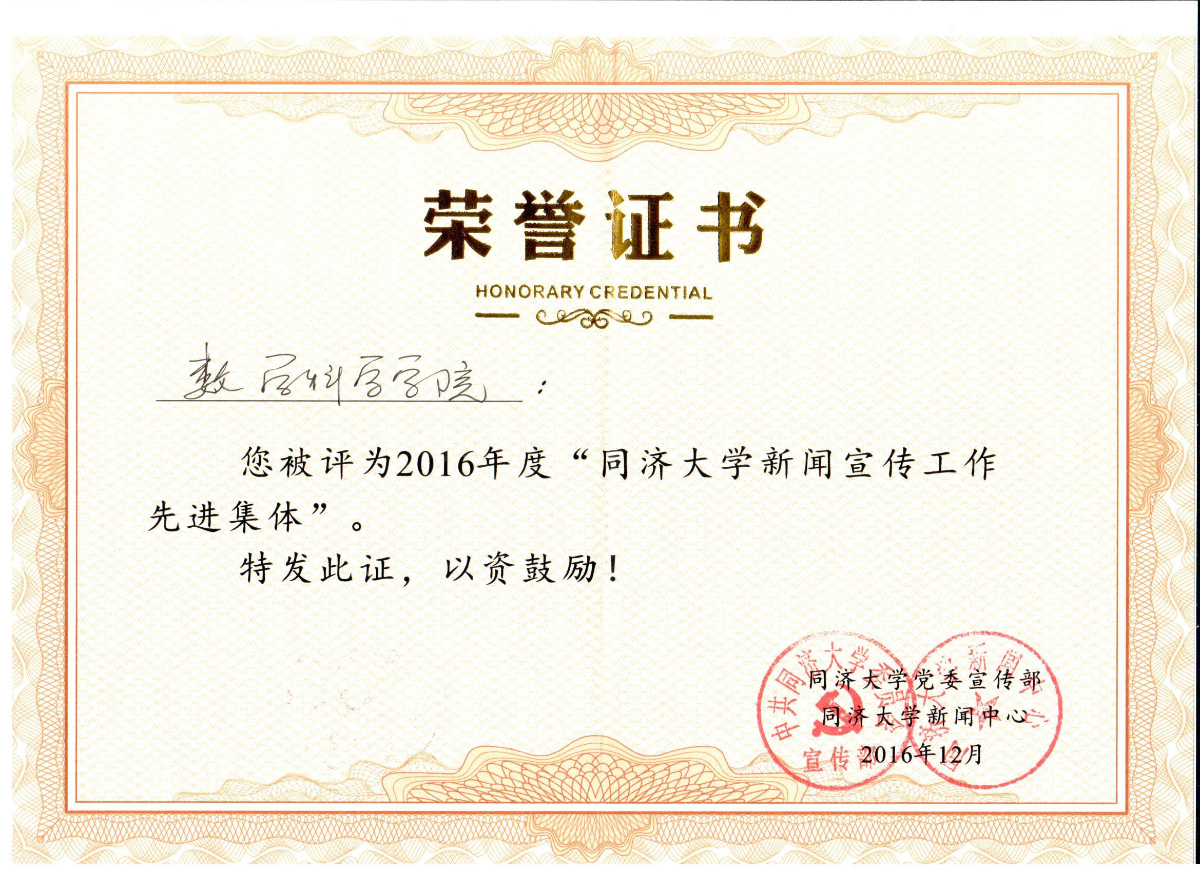 新闻宣传工作先进集体”称号。在12月9日宣传部组织召开的2016年度学校新媒体工作交流会上,就此次评选出的十家单位予以表彰,其他获奖单位还有建筑与城市规划寸止