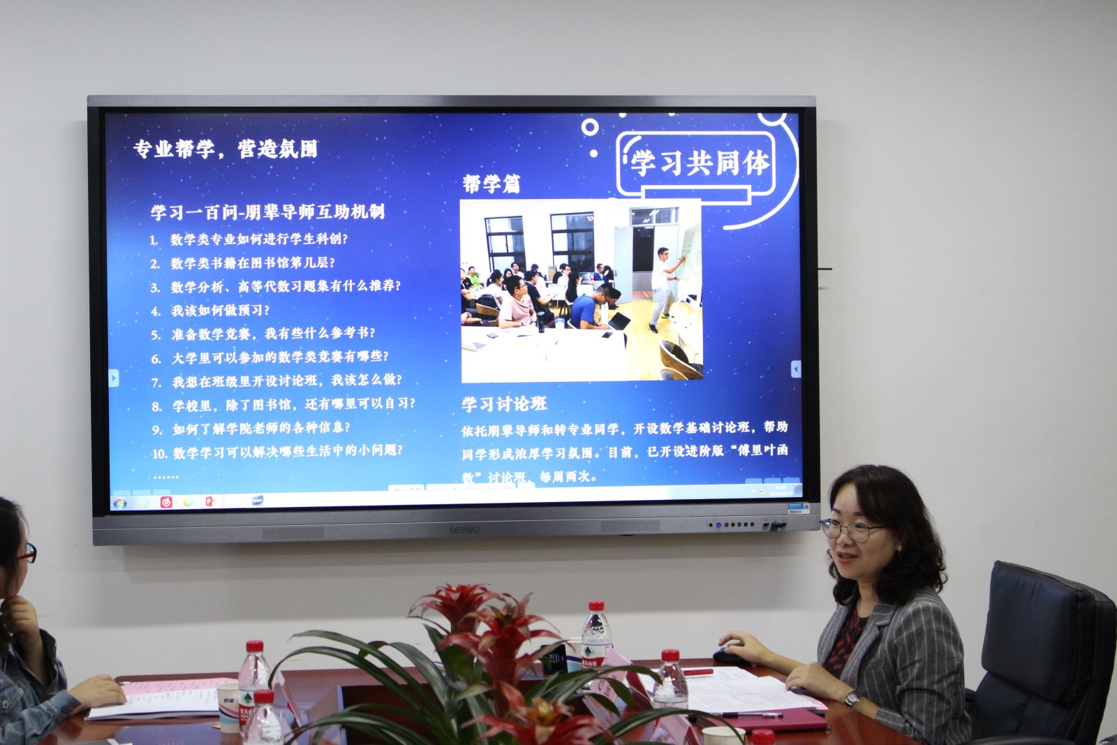 副教授杨亦挺介绍了数学拔尖班学生入学以来的思想动态和学业状况,并就新生院班级建设管理工作提出了一些建议意见。大四学生陈锦源分享了他作为朋辈导师开展新生帮扶工作的感想,他谈到朋辈导师主要发挥“领跑”和“助跑”的作用,通过与新生对接,在思想上引领,在行动上帮扶,在学业上助力,更好地陪伴新生的成长。新生院党委副书记崔莹表示,新生院学生的培养离不开专业寸止