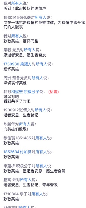 4月4日,全国哀悼日,在直播间里,数院的老师同学们一同默哀致敬。听了今天的党员talk,感受到了在这次新冠肺炎疫情期间青年们的担当与家国情怀,以及在面对危机时挺身而出的勇气,学习到了他们奉献青春、奋斗青春的无畏精神。桃花红雨英雄血,碧海丹霞志士心。今日神州看奋起,陵园千古慰忠魂。最后,愿逝者安息,生者奋然。相信在榜样的引领下,同数青年们将会更加坚定心中的自信,更加坚定心中对于祖国的热爱,砥砺前行,并用实际行动践行这份深沉的爱意。