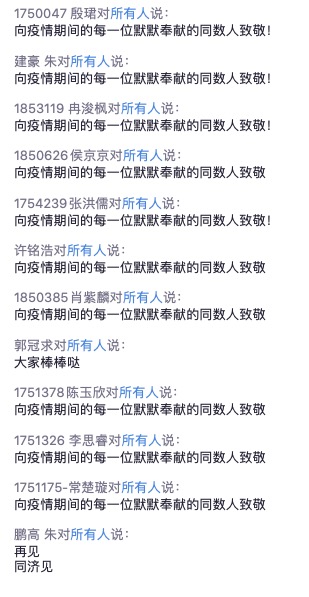 今天是清明节,这场特殊的党员Talk直播活动,让我看见了同数青年在疫情下的责任与担当。这份坚定与奉献,让我在直播过程中就禁不住湿了眼眶。时值清明,逝者安息,生者铭记,不负英雄逆行,不负祖国培养,更要时刻牢记青年肩上的使命与担当。孔德懿书记说,“需要热血的时代,一定是青年的时代。”当下,青年人在思考、在行动,奋斗与磨砺过后,祖国的未来是星辰大海,充满了希望,也沐浴着光明。作为同济数学青年,今后的生活中,我必将更加努力,为实现中华民族伟大复兴而贡献出自己的一份力量。