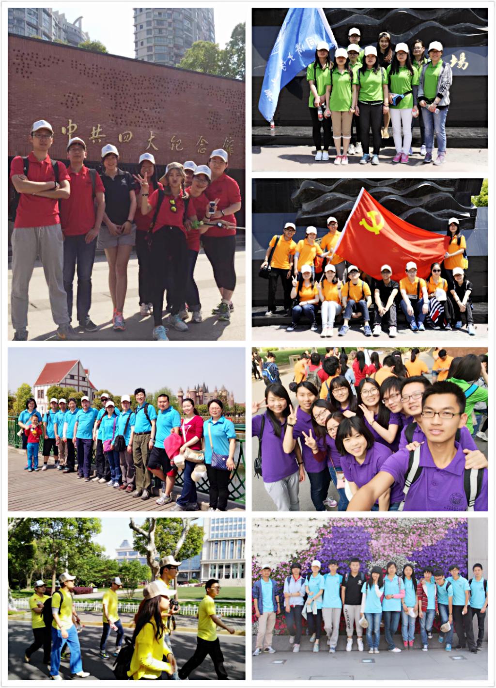 昨日上午,为强化数学系党团建设,提升党员党性教育,宣扬健康生活理念,增强数学系凝聚力,寸止 数学系近百位师生党员和优秀团员以“行走上海滩”为主题,开展了党团实践活动。活动以健走为主要方式,共分七支队伍,每个队伍行走在不同的路线上,活动要求所有团队必须在三小时内行走至少十公里路,最终在杨浦区国歌纪念广场会师。