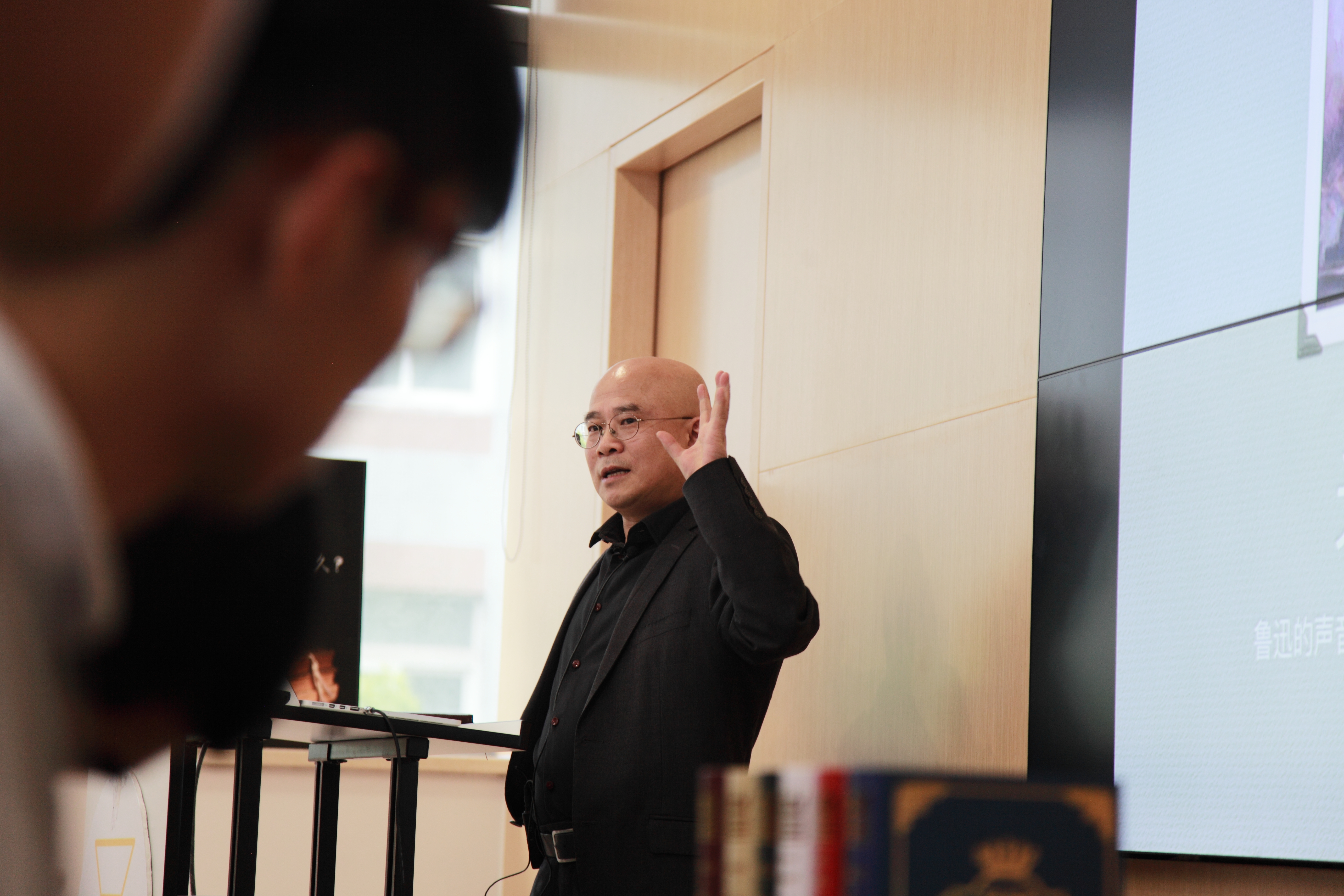 鲁迅研究中心张闳教授受邀担任主讲嘉宾。张闳教授从分享自身研究鲁迅的经历开始,多角度分析鲁迅及其作品,领大家走进鲁迅、倾听鲁迅的“声音”、领会鲁迅的思想精神,并向同学们推荐《黑暗中的声音》一书。当天恰逢世界读书日,张闳教授建议同学们,要多尝试去感受通过言说、思考、阅读和写作建立起来的通往未来之路的力量。此外,本次还增加了考察实践环节,细雨中同学们随书会的工作人员一起前往多伦路文化街,零距离接触鲁迅的生活和工作,感受上世纪二三十年代老上海的文化底蕴。理论与实践相结合,受到同学们一致好评。