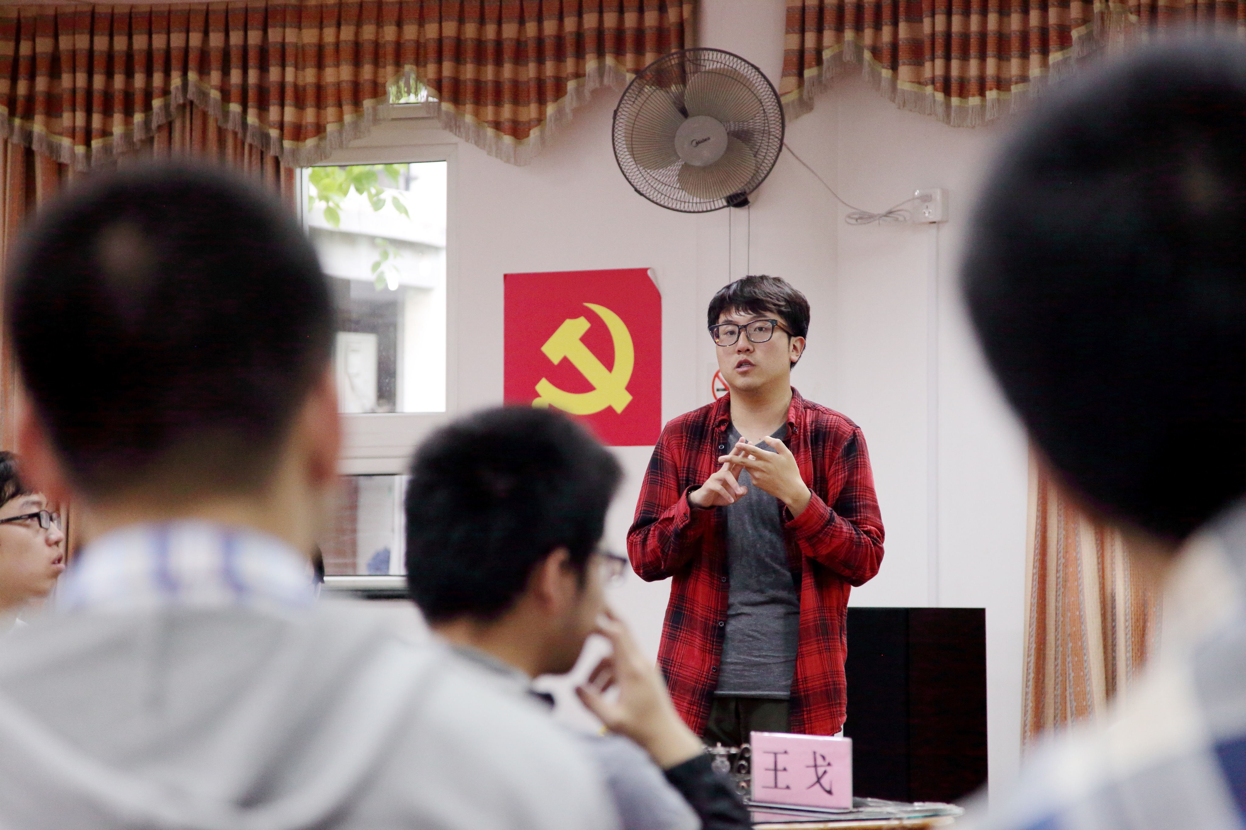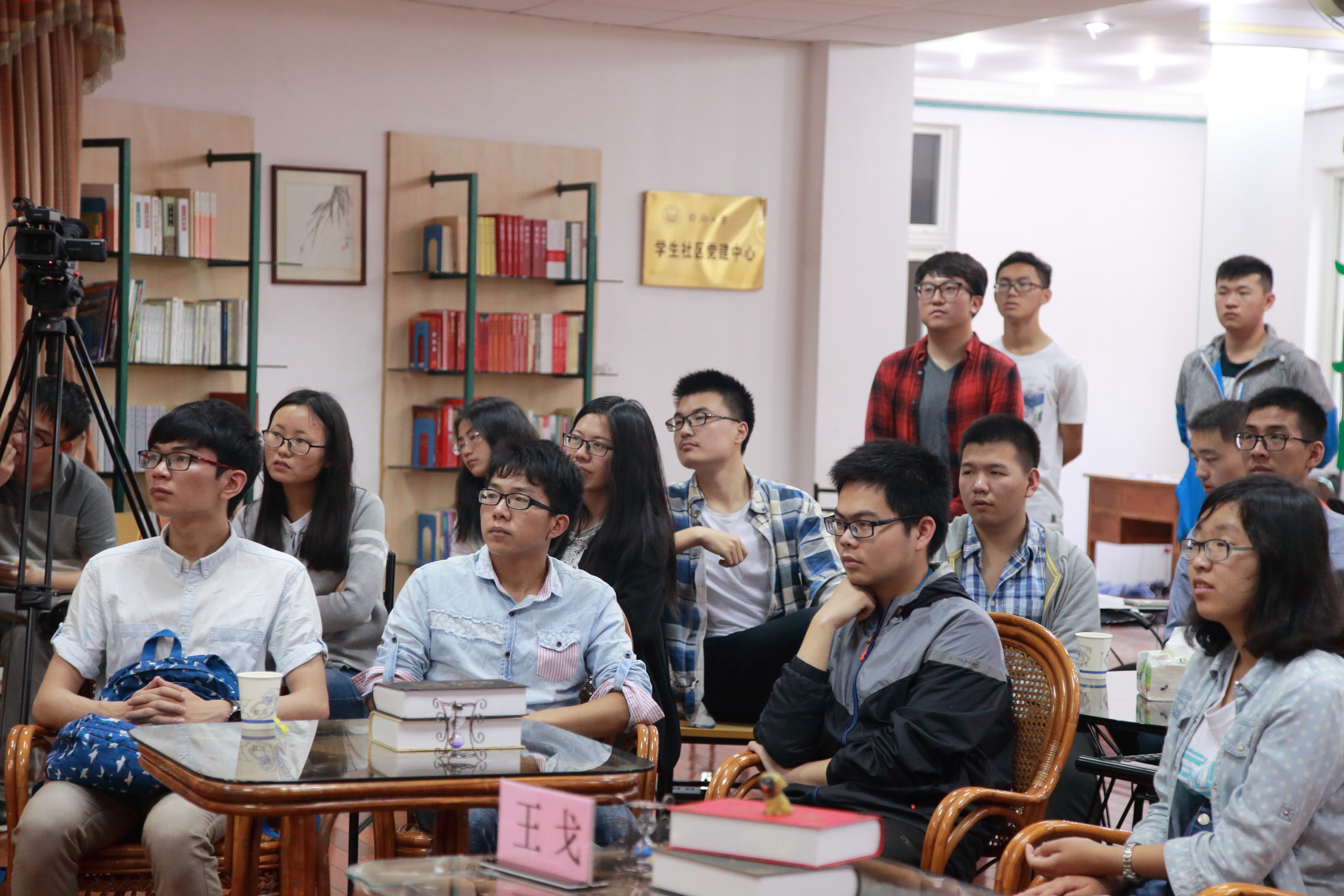 辅导员、学生就业指导中心王戈老师担任主讲嘉宾。王老师主要通过几部影视剧作品向大家娓娓道出他对信仰及国家软实力的理解,他首先与大家分享当下大火的韩剧《太阳的后裔》,并联系《兄弟连》、《珍珠港》、《大国的崛起》等相关题材作品,深入剖析软文化对国家形象的塑造。同时,王老师还结合当下征兵工作,介绍铁血军人是怎样炼就的。最后王戈老师向大家推荐《普京-为俄罗斯而生》一书,并详细解读了部分章节,让同学们对军事等有进一步了解。
