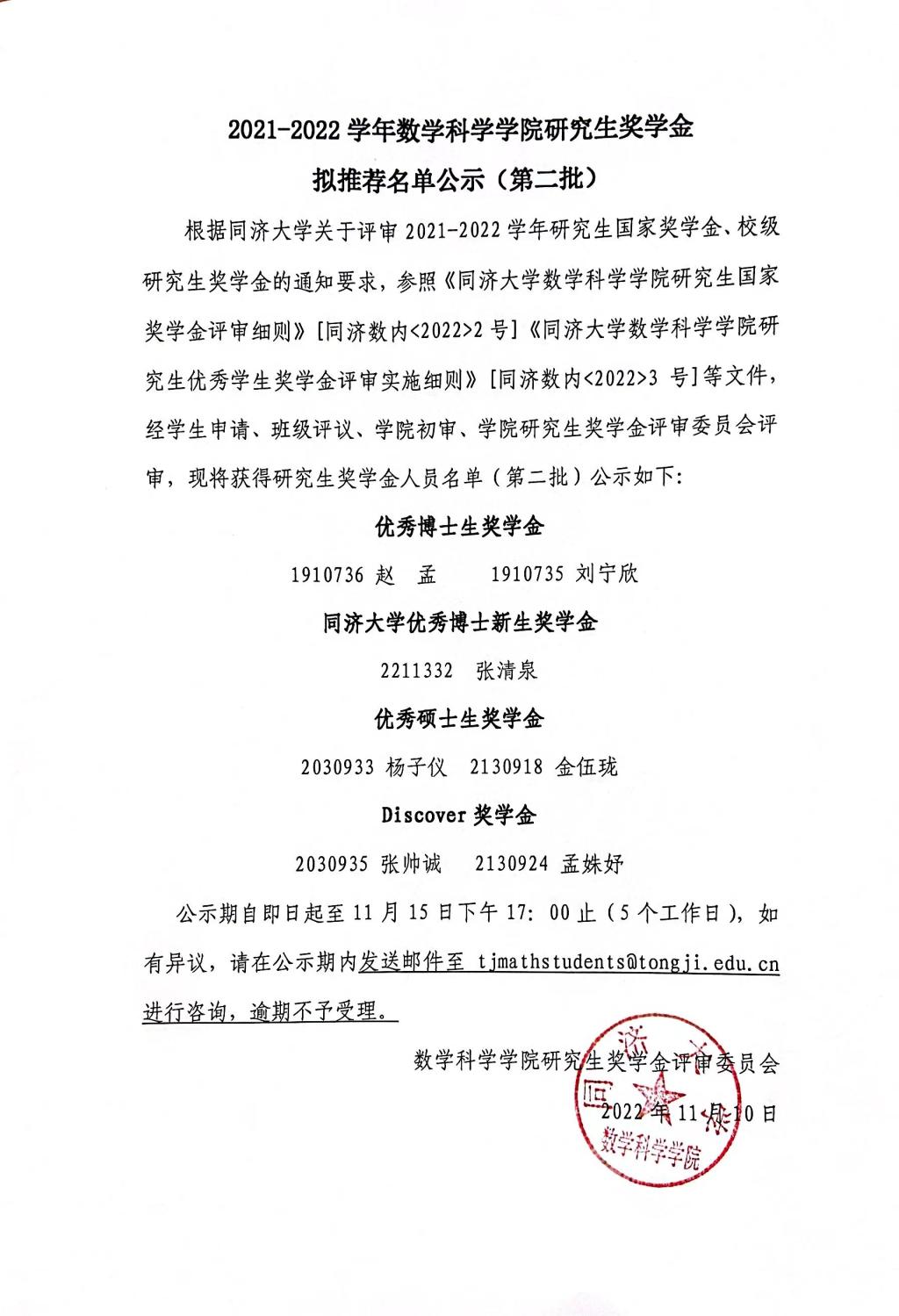 2021-2022学年寸止 研究生国家奖学金拟推荐名单(第二批)