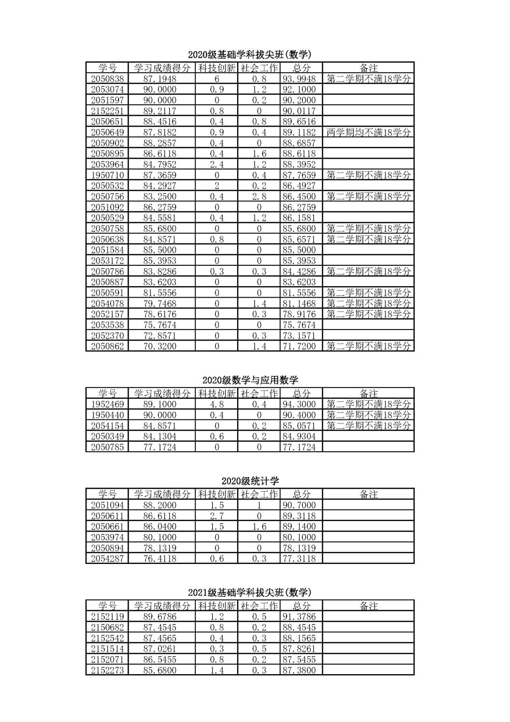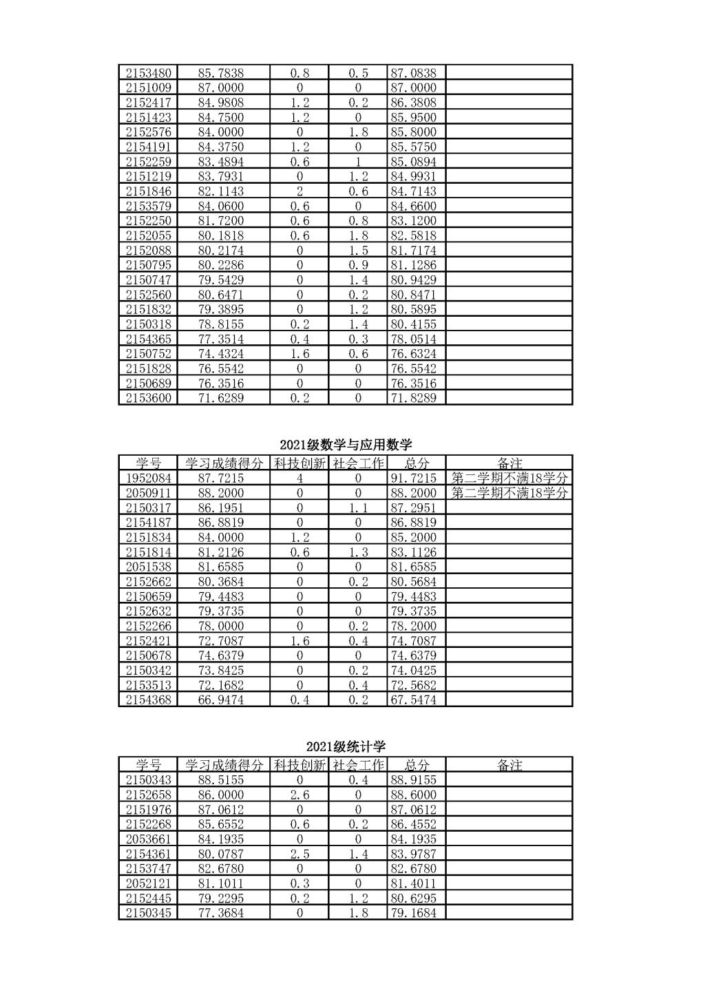 2022-2023学年本科生奖学金申请者初评分数公示(一)