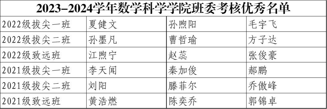2023-2024学年寸止 班委考核优秀名单