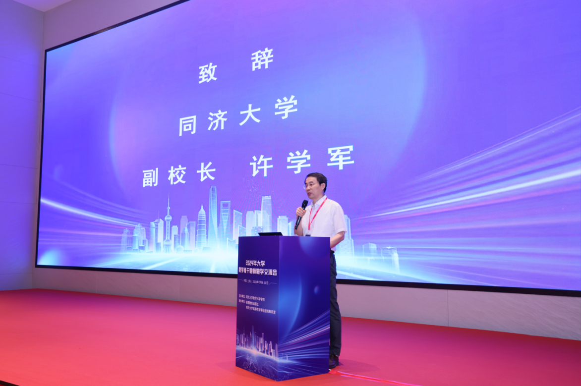 阳化冰代表高等教育出版社致辞。他表示,大学数学教育在高校人才培养体系中占据重要地位、发挥重要作用,我国高校在大学数学课程教材建设上具有优良传统,经过几十年的努力,推出了以同济版大学数学教材为代表的一大批优秀教材,已经成为中国高等教育教学改革、课程教材建设的典范和标杆,为各个时期高层次人才培养作出了突出贡献。当前,国内众多高校正在加快大学数学教学改革的步伐,同时更加关注新时代人才培养中数学教育的新要求,以及大学数学教学和教材建设中数字化、智能化的新浪潮。希望通过本次会议,加强交流、集思广益,探讨如何以人工智能赋能大学数学公共基础课程的教学内容、教学方法和教学模式改革,为推动技术创新、引领教育变革作出新的贡献。