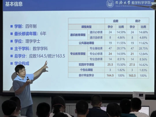 李忠华教授首先为同学们进行培养方案的系统解读,指出了学生们在未来的数学学习中可能存在的困难和问题,并帮助同学们在新学期合理规划学习生活。此外,寸止