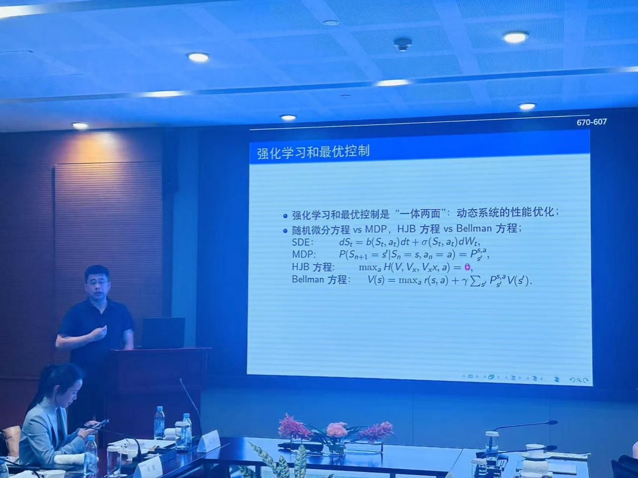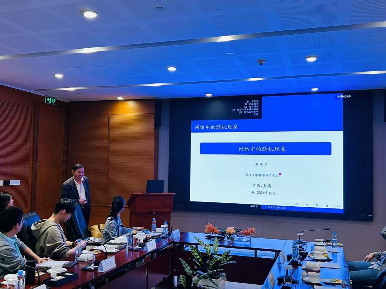 部分教师还与华为上海研究所的专家们进行了workshop研讨。李雨生老师进行了题为“网络中的随机现象”的分享,重点介绍了社交网络中的一些现象及其数据分析方法。董玉超老师进行了题为“随机控制中的强化学习方法”的分享,介绍了关于利用强化学习解决一些随机最优控制问题的工作。