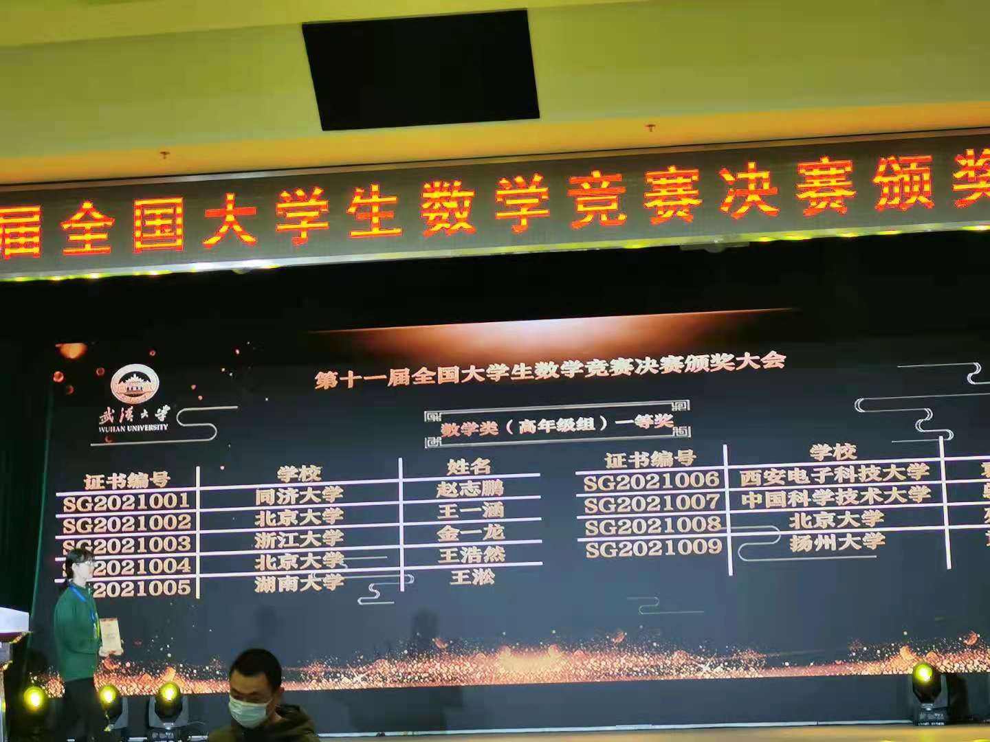 2018级赵志鹏、铁道与城市轨道交通研究院2018级宋泽楠两位同学一路过关闯将入围决赛,一举拿下数学高年级组一等奖和非数学组二等奖。其中赵志鹏的决赛成绩位列数学高年级组全国第一,刷新了近年来寸止