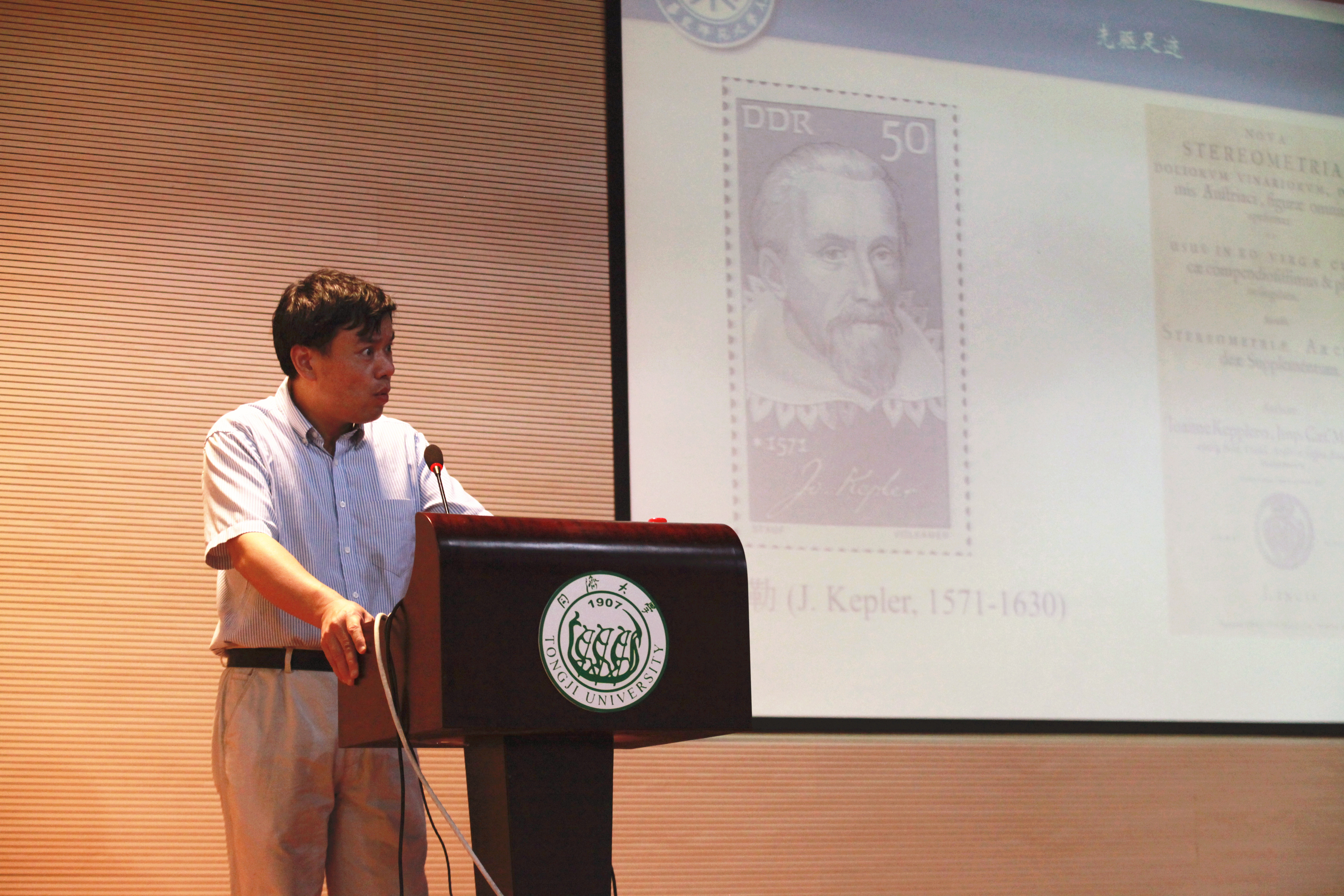 汪晓勤教授以“积微成著——微积分背后的数学故事”作为此次讲座主题。他特别指出同济微积分教学水平之好以及同济与微积分不可不提的渊源,并分别从微积分产生的背景、先驱者们的故事、微积分的部分应用、微积分在中国的起源与传播和微积分的历史对于我们人生的启迪等五个板块进行分享。