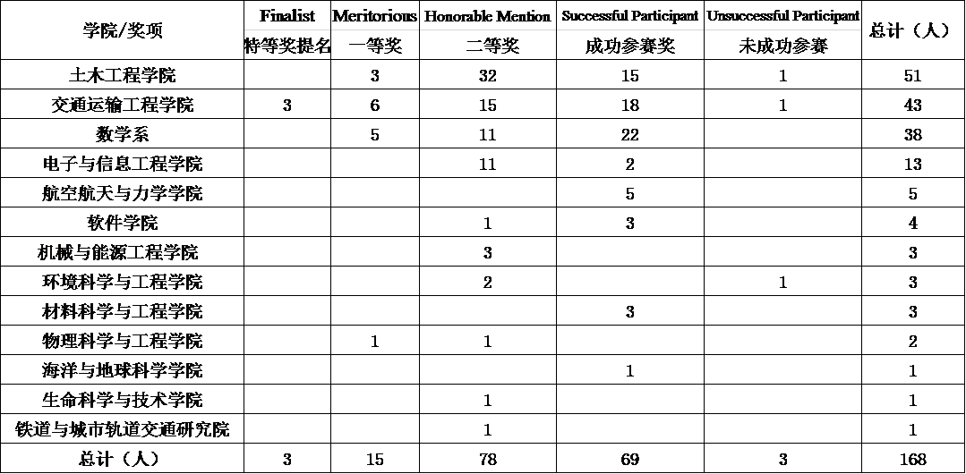 的浦雅添、樊晓阳、周漪三位同学获得竞赛特等奖提名(Finalist)。此次竞赛寸止选派了由各理工科院系学子组成的56支参赛队伍、共168名优秀学子参加比赛,共获得特等奖提名(Finalist)1项,国际一等奖(Meritorious Winner)5项,国际二等奖(Honorable Mention)26项,成功参赛奖(Successful Participant)23项。其中,特等奖提名和一等奖在所有奖项中仅占1%和9%。