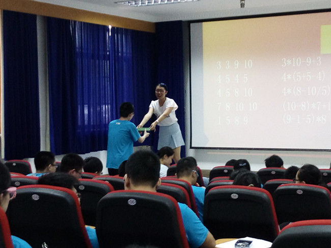 在接下来的游戏环节中,同学们以组为单位,完成猜数学家与24点等游戏。同学们都非常积极踊跃,富有团队精神与荣誉感。