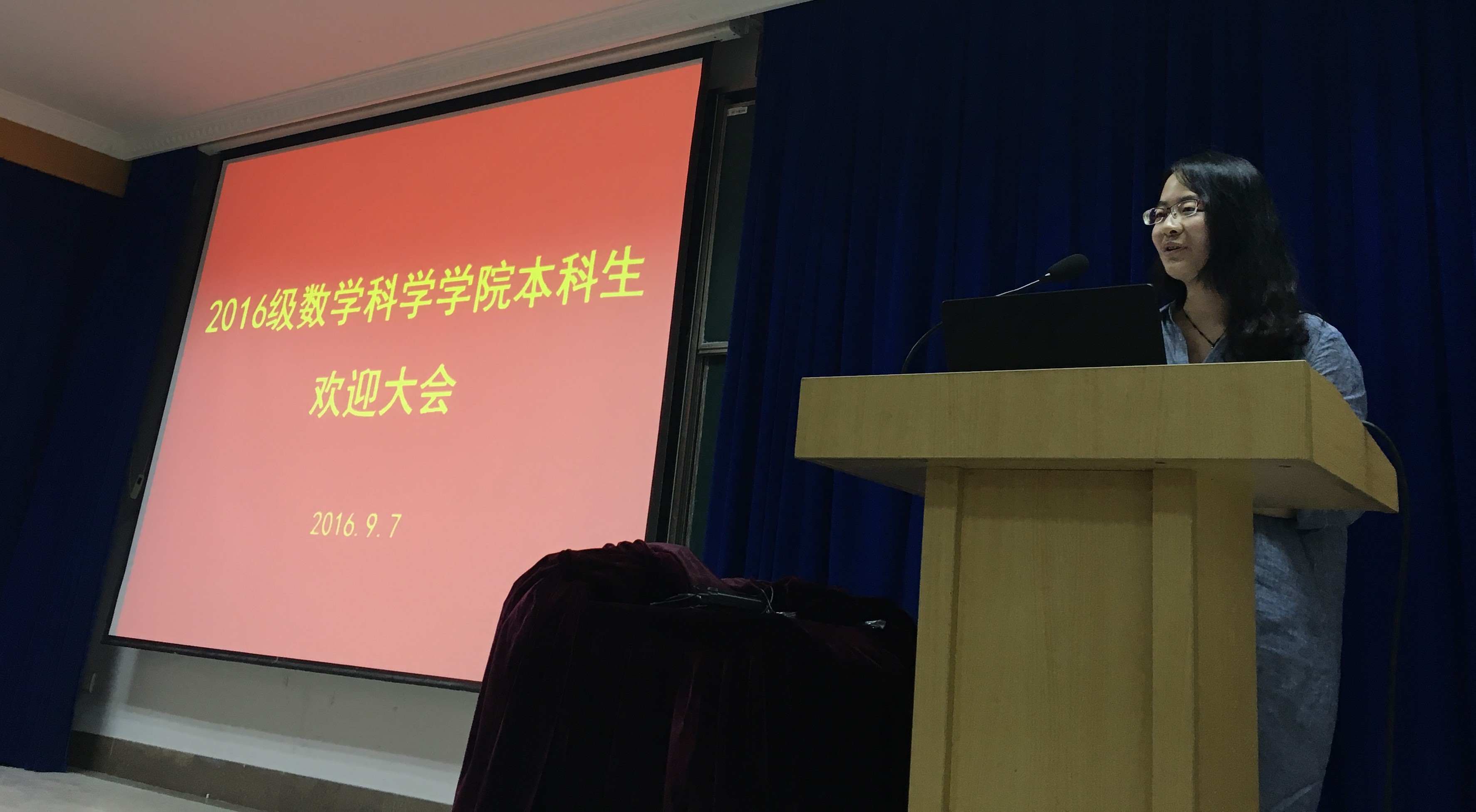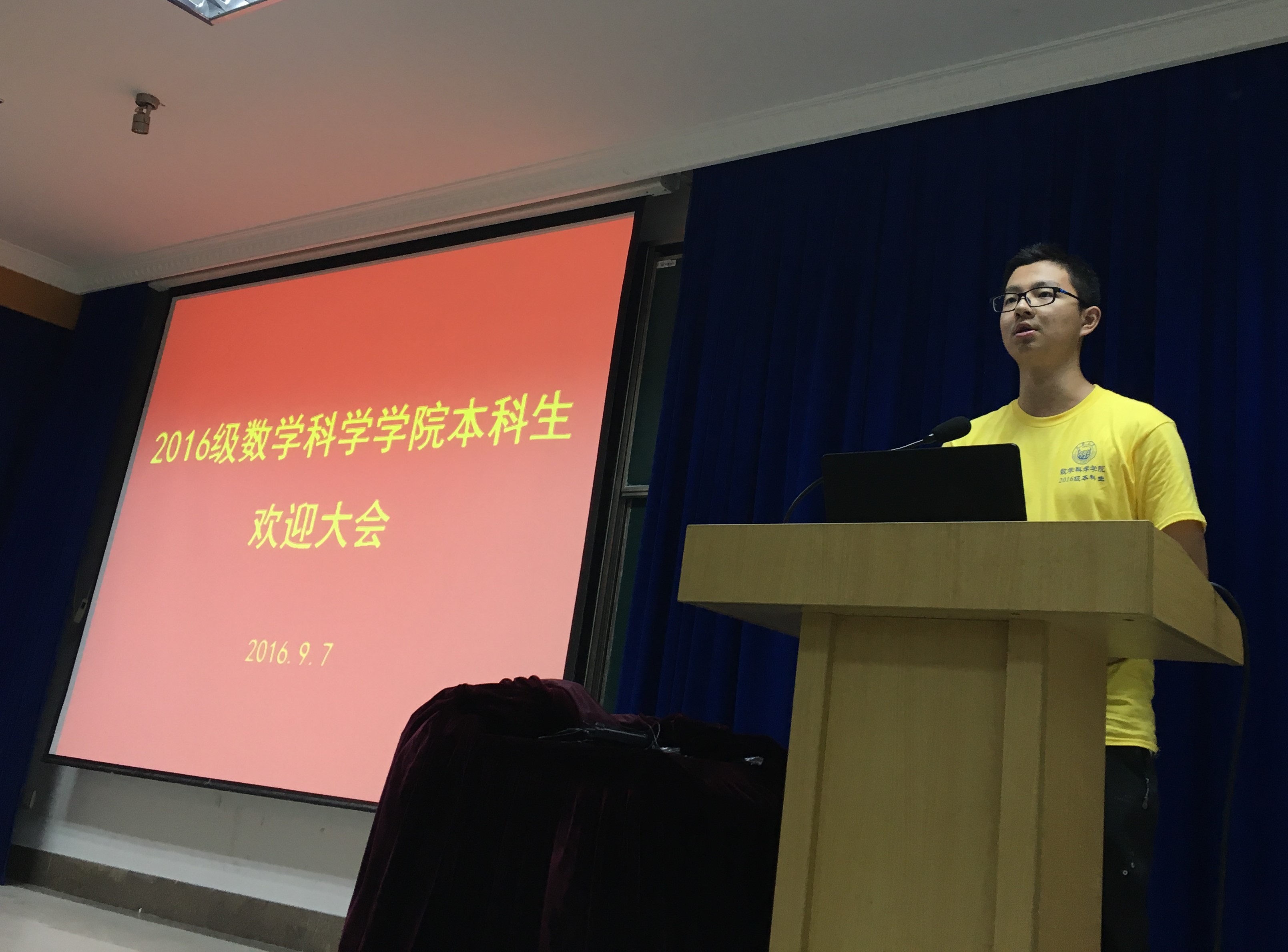 最后,2014级本科生岳乾作为优秀学长代表发言,她回忆了自己入学时刻的期待与迷茫,也分享了成长的经验,她鼓励同学们要勇敢尝试,做最好的自己;2016级钟楚彦作为新生代表发言,他表达了对大学四年生活的期待,也表示作为同济数学人,一定会格物致知、宁静致远,迎风踏浪、划桨前行。