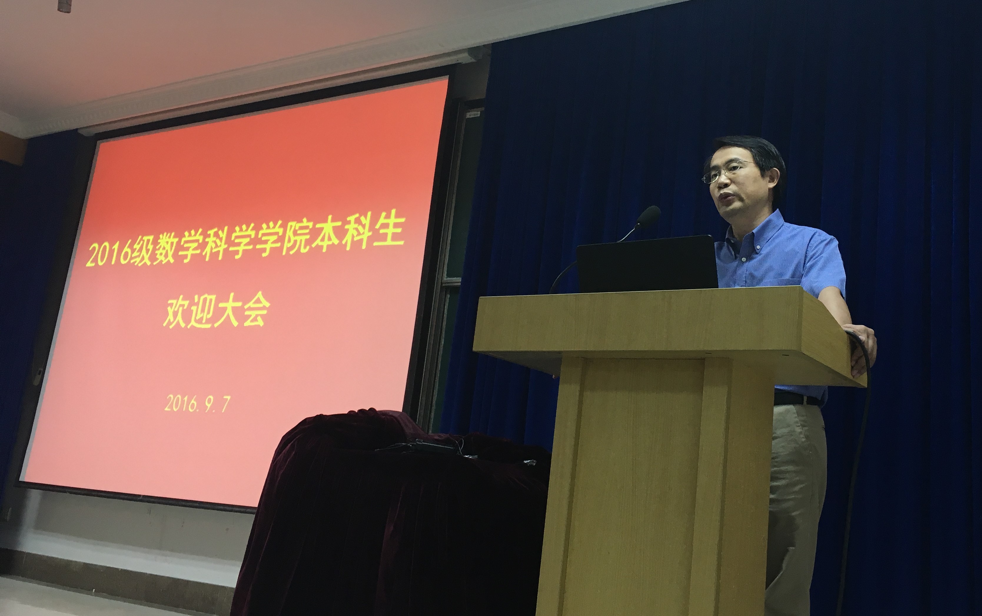 随后,副院长潘生亮教授向同学们介绍了院系本科培养的思路,向同学们讲解了试点班与普通班的培养思路、淘汰机制及未来发展路径。他强调,良好的学习习惯对于数学学习尤为重要,同学们需要自觉自律,提升自学能力;善于思考,培养逻辑推理能力,并在大学前两年踏实学习基础课,为后续学习打好坚实基础。