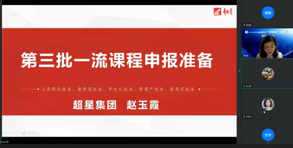 赵玉霞老师围绕一流课程建设的政策文件解读、如何基于OBE与“两性一度”优化在线课程、结合常态化教学打磨申报材料三个方面做了一流课程建设和申报培训报告。她对各类型课程建设重点、申报书的撰写要点、附件支撑材料的准备等方面进行了一一讲解,并通过多个案例详细解读了一流课程申报书中存在的常见问题,与参会教师进行了深入交流。