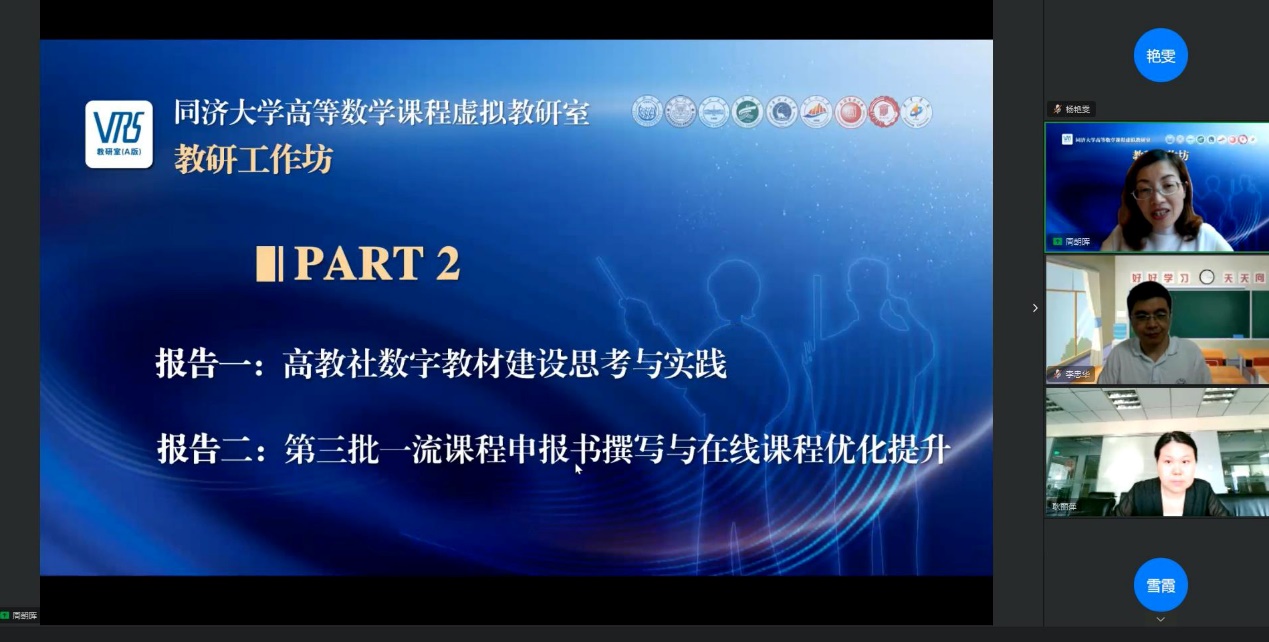 副院长李忠华教授参加本次活动并致辞。本次教研活动通过虚拟教研室平台在线开展,由教研室负责人周朝晖教授主持,虚拟教研室成员及来自全国多所高校的大学数学课程建设负责人、骨干教师等参加了本次会议。