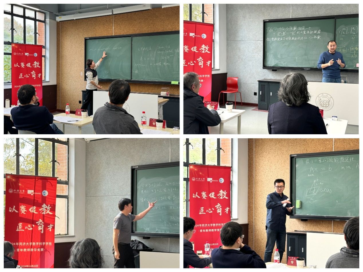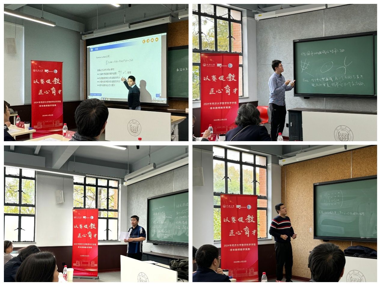 特邀9位经验丰富的专家评委担任评审工作。参赛青年教师以饱满的热情和专业的素养,展开了激烈而精彩的教学比拼,讲课内容涵盖了数值分析、高等代数、偏微分方程、抽象代数、几何学初步、数学分析、解析几何、微分流形、人工智能算法导论、线性代数、应用统计、概率论、统计计算等课程。竞赛过程中,青年教师们充分展示了各自的教学特色和风格,有的注重理论推导的严谨性,有的强调应用实践的实用性,有的则通过巧妙的教学设计激发学生的学习兴趣和主动性。评委们从教学设计、教学方法、教学过程等多个方面进行了综合评价,并给出了宝贵的建议,为青年教师的成长提供了有力的指导和支持。