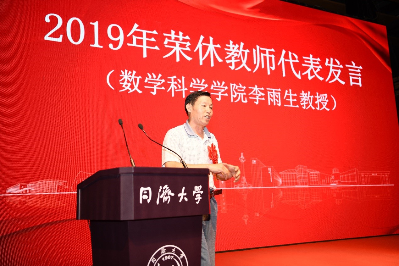 “师德师风优秀教师提名奖”。我院李雨生和李春景两位老师作为2018-2019学年光荣退休的教师代表,上台接受校领导颁发的荣休纪念证书,李雨生教授还作为2019年退休教师代表发言,表示将继续为同济的人才培养发挥余热。