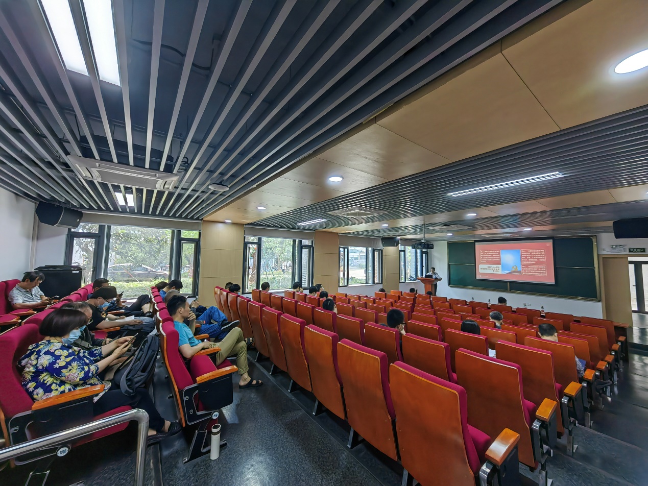 教授陈颐作“学习党的二十大:在法治轨道上全面建设社会主义现代化国家”专题报告。会议由我院党委副书记、纪委书记杨亦挺主持。