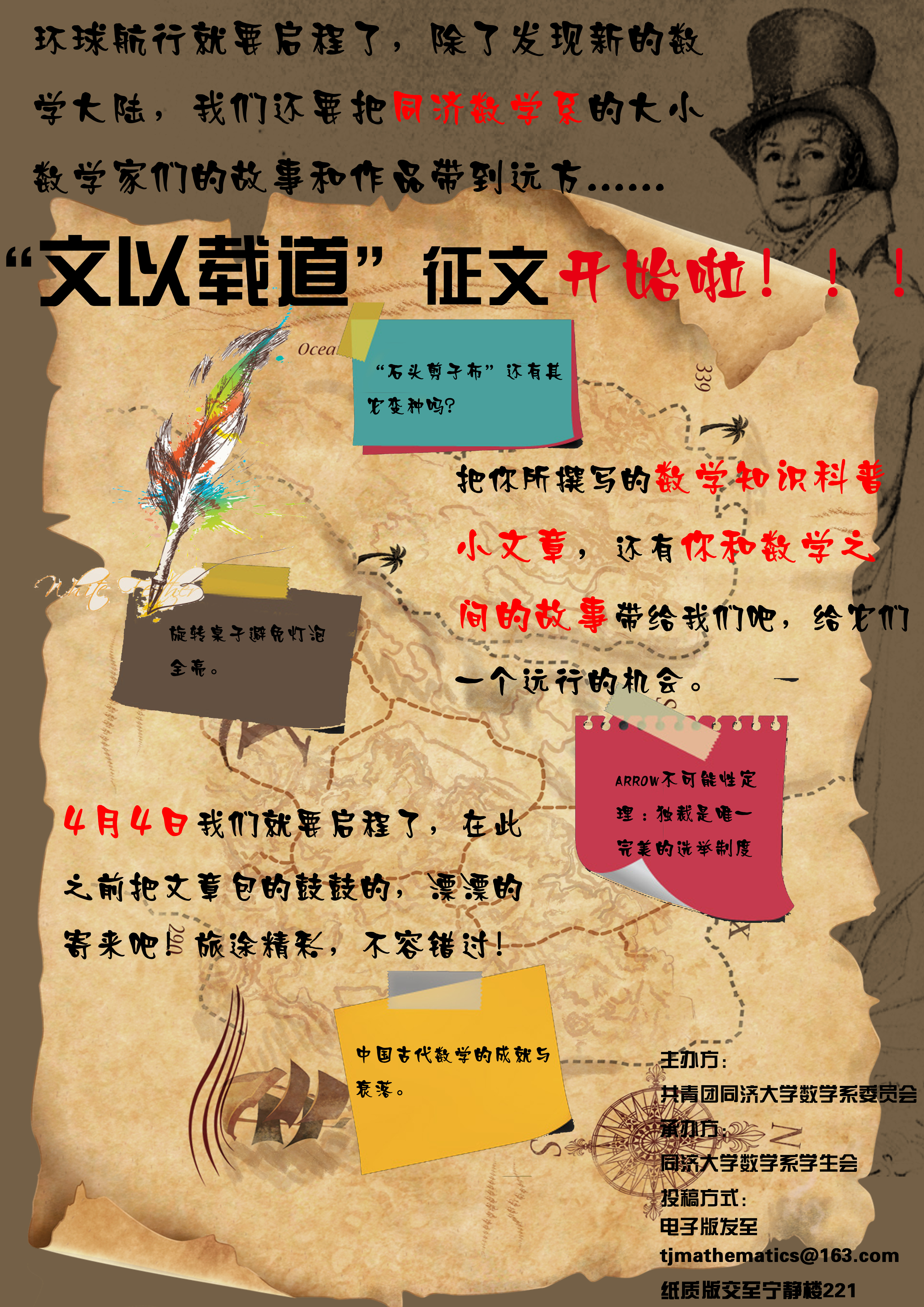可以用科普文章描绘你对某个数学问题的独到见解,无论它宏大或微小,只要是你的真实所想,便一定独树一帜!也可以用叙述散文抒发你对数学文化的深挚情谊,无论它琐碎或特别,只要缘起你内心,就注定精彩绝伦!你,还可以从不同的角度探讨某个数学难题,谈谈自己对课堂中某个知识点的深层探索;你,也可以与我们分享你对某类问题解法的归类总结……记录身边的数学故事,分享每一份数学感触,传播每一点学术快乐!