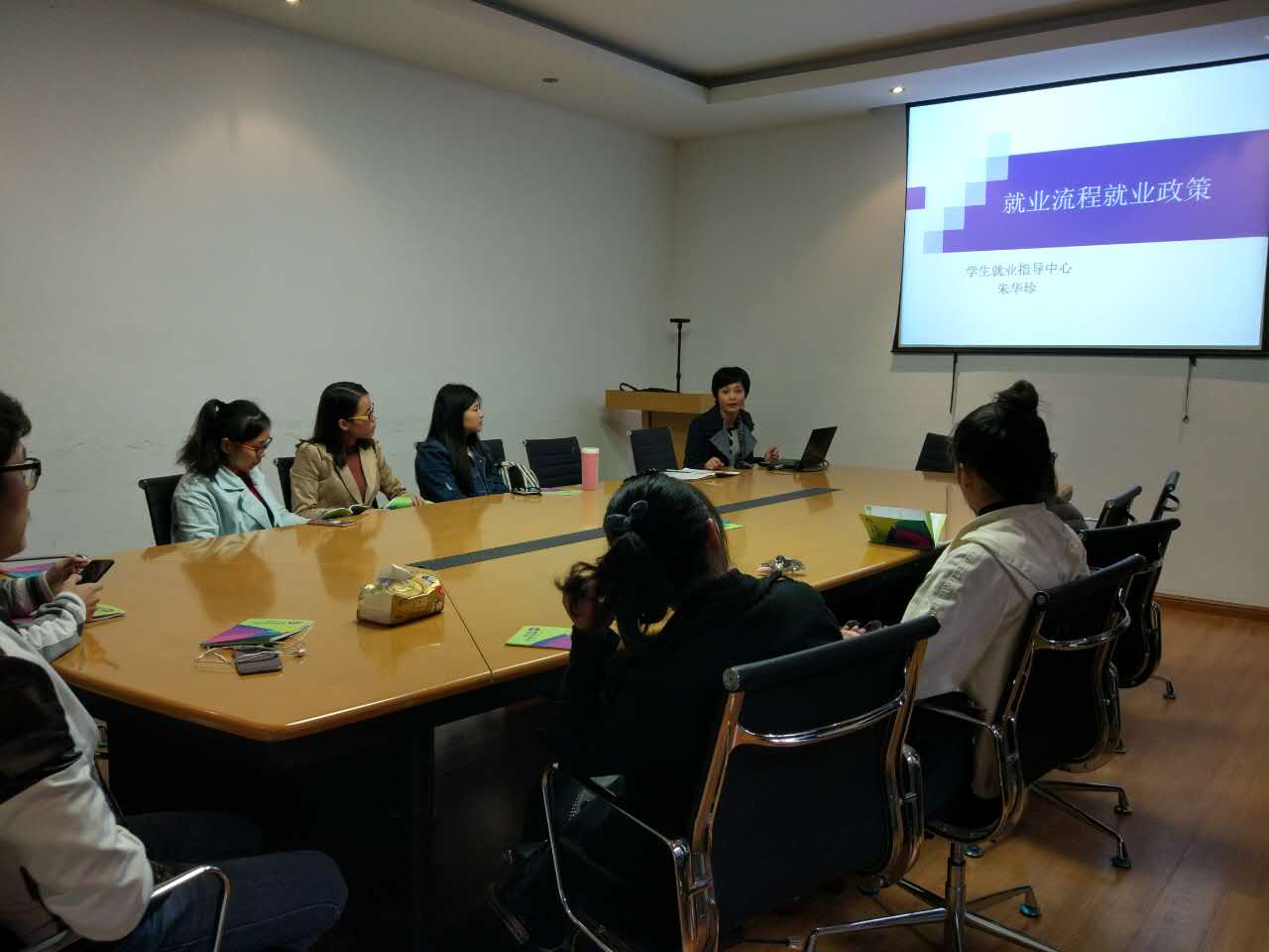 2016年度就业指导及宣讲会在致远楼102举行,就业指导中心朱华珍老师应邀对当前就业形势、就业政策以及就业流程进行了详细的讲解,并与参会的二、三年级学生进行了交流和指导。