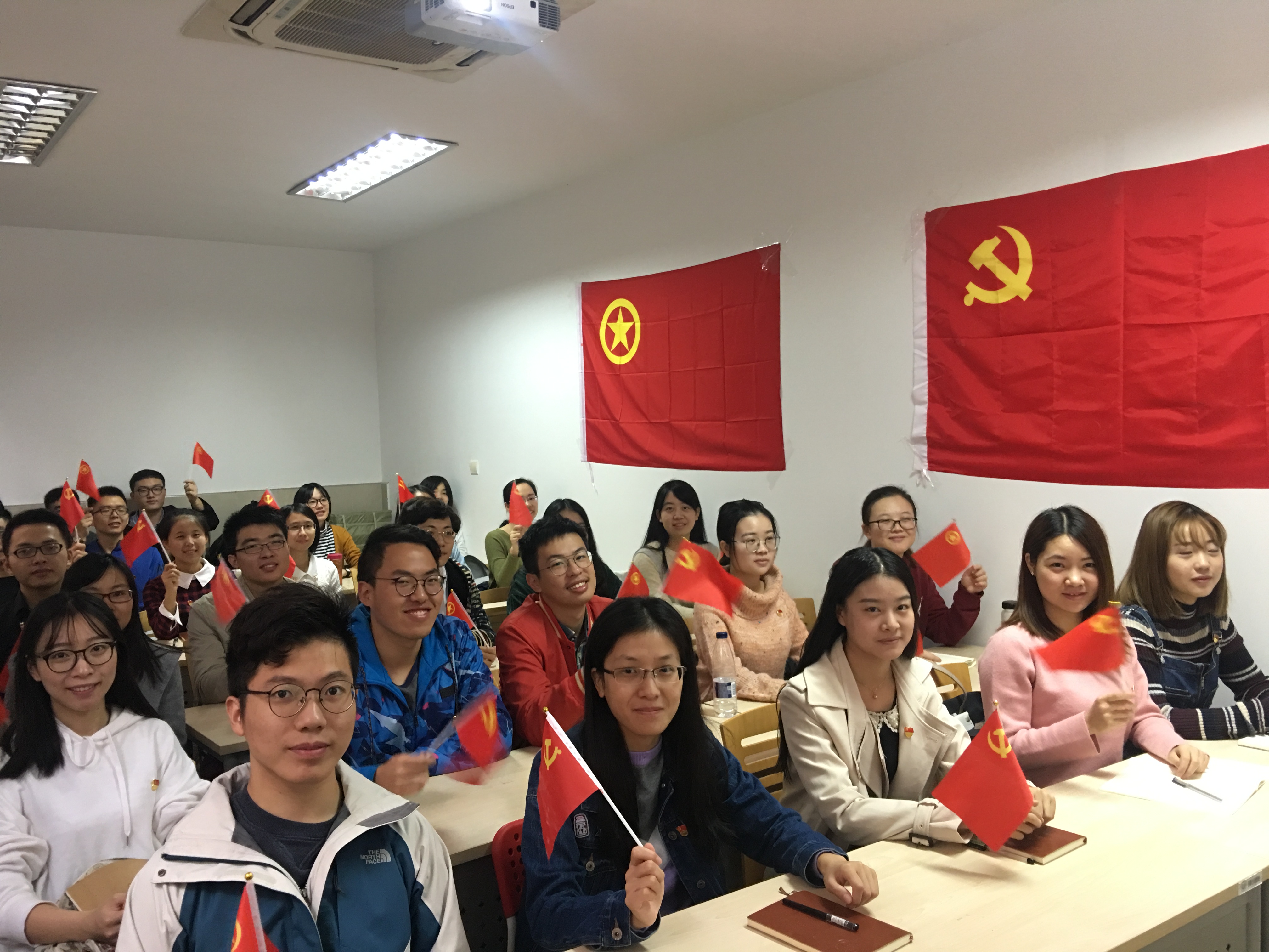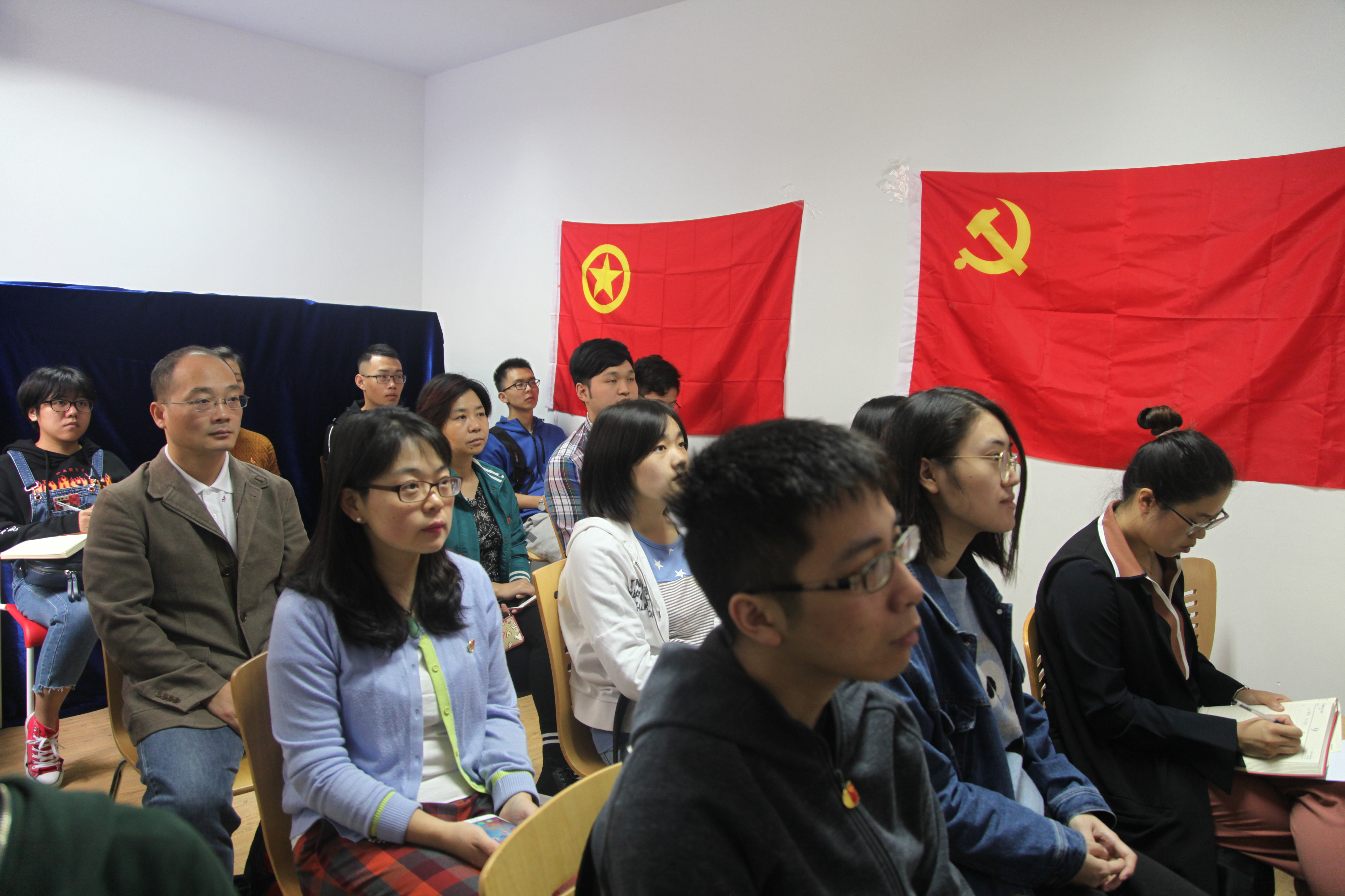 师生热切关注十九大的召开,通过多种形式收听观看十九大开幕式。今天上午,我院师生党员和团学干部一起在宁静楼一楼会议室、大礼堂集中收看十九大开幕式,共同聆听并学习了习近平总书记在党的十九大开幕式上的重要讲话。一面面党旗、团旗,一颗颗党徽、团徽,红彤彤地映衬在一张张激动与期盼的脸上。
