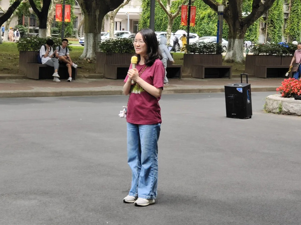 十三点十五分,出征仪式正式开始。在主持人简要介绍完本次活动后,寸止 团委书记彭婧老师做动员讲话。彭老师指出,有理想、有本领、有担当的青年人能够给国家、社会带来翻天覆地的变化。她勉励同学们在活动中找寻前辈的初心与党史中的精神瑰宝,以筑信仰之基、补精神之钙,成为具有“以青年之小我,铸祖国之大我”理想的青年。随后,在主持人一声令下,活动正式开始,各队陆续踏上不同路线的征程。