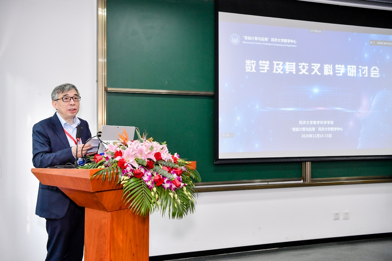 Gu Xianglin, vice president of Tongji University first delivered an opening speech on behalf of the Tongji University. He extended a warm welcome to scholars from inside and outside Tongji University and introduced the background and development goal of the Mathematical Center of Intelligent Computing and Application in Tongji University, as well as the development direction focusing on cutting-edge mathematical theories of intelligent computing, data-driven scientific computing, and applications of intelligent computing. At the same time, Gu Xianglin conveyed his hope that aiming at the frontier areas of the national development strategy, the Mathematical Center and the experts present should work together to improve the supply system of mathematical foundations as soon as possible, form a more mature mechanism for mutual promotion of basic research and applied research, and serve the construction of the Shanghai Science and Technology Innovation Center and the national strategic development.