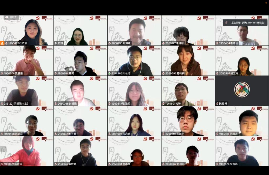 紧接着,二十大刚刚闭幕,本科生党支部旋即举办了“党员面对面 共学二十大”的云端学习会,从读原文、悟原理开始,近百名青年党员及积极分子通过领学、共学,吸收和把握二十大报告的新鲜内容,紧跟新时代,第一时间提升优秀青年群体的政治素养。
